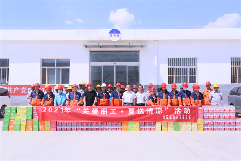 大暑將至,為進(jìn)一步做好職工夏季高溫期間防暑降溫工作,關(guān)愛廣大一線職工的健康安全,把對(duì)廣大職工的關(guān)心關(guān)愛落到實(shí)處,7月21日,新區(qū)工會(huì)聯(lián)合石投集團(tuán)工會(huì)開展“關(guān)愛職工·夏送清涼”活動(dòng),深入蘭州新區(qū)化工園區(qū)項(xiàng)目建設(shè)和生產(chǎn)一線開展慰問活動(dòng)。新區(qū)黨群工作部副部長(zhǎng)秦利軍、石投集團(tuán)工會(huì)主席劉東斌一行深入項(xiàng)目現(xiàn)場(chǎng),為一線職工送去防暑物資和關(guān)懷。
