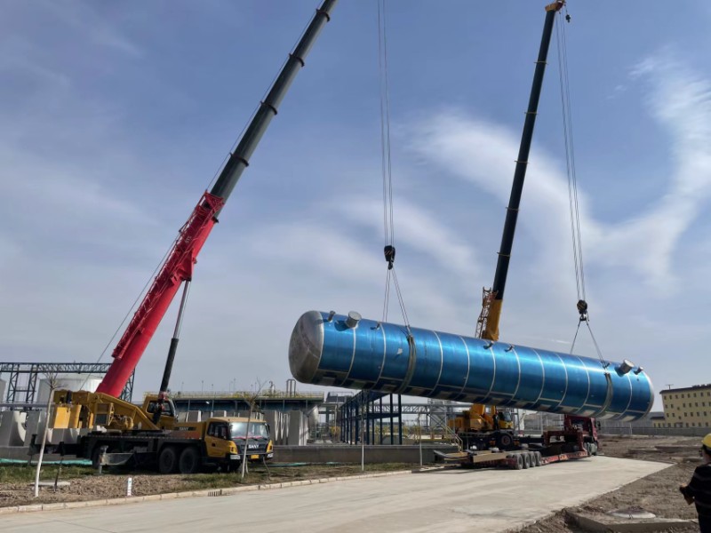 近日,疫情防控形勢(shì)復(fù)雜嚴(yán)峻,這對(duì)于物流園貨場(chǎng)項(xiàng)目建設(shè)來(lái)說(shuō),壓力極大。設(shè)備到貨時(shí)間延長(zhǎng),施工工地人員密集,流動(dòng)性大,項(xiàng)目建設(shè)面臨材料、設(shè)備、人員等多重壓力?;ど藤Q(mào)公司多方協(xié)調(diào),克服種種困難,終于于11月15日,硝酸儲(chǔ)罐順利運(yùn)抵物流園貨場(chǎng)。檢查吊車(chē)司機(jī)、運(yùn)輸司機(jī)等“兩碼”正常并按要求報(bào)備后,物流園貨場(chǎng)立即安排,各種機(jī)械輪番作業(yè),公司職工和施工單位人員在工地上揮汗奮戰(zhàn),整個(gè)施工現(xiàn)場(chǎng)繁忙而有序,經(jīng)過(guò)了十二個(gè)小時(shí)的奮戰(zhàn),克服了吊裝過(guò)程中種種困難。在公司領(lǐng)導(dǎo)、項(xiàng)目部技術(shù)人員的協(xié)同下,物流園貨場(chǎng)罐區(qū)主體工程之一——直徑4米、高度近24米、吊裝總重量近30噸的硝酸儲(chǔ)罐順利吊裝并精準(zhǔn)落位。截止發(fā)稿,新安裝硝酸儲(chǔ)罐已進(jìn)行罐頂蓋板和防護(hù)欄桿焊接作業(yè),預(yù)計(jì)月底,硝酸儲(chǔ)罐所有輔助設(shè)施將全部完成。