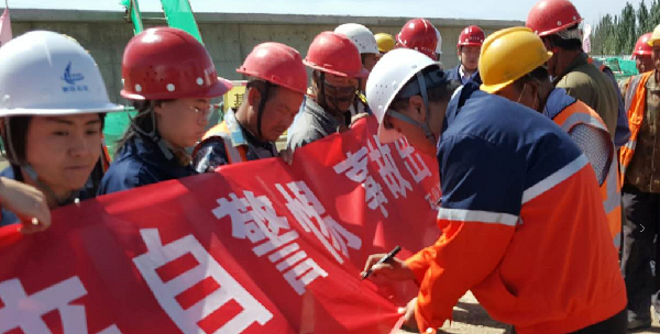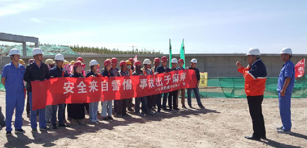 活動中,博石環(huán)保公司組織全體職工及施工監(jiān)理單位工作人員在宣傳條幅上簽字,對工作中履行的安全生產(chǎn)職責(zé)作出承諾。博石環(huán)保公司總經(jīng)理朱伯麟結(jié)合今年“消除事故隱患,筑牢安全防線”的安全生產(chǎn)月活動主題,圍繞“責(zé)任落實、隱患排查、風(fēng)險管控、應(yīng)急處置”等內(nèi)容進(jìn)行安全宣講。
