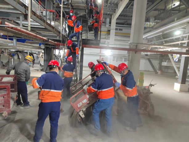 當(dāng)天9時,56名黨員、積極分子及共青團(tuán)員穿戴好勞保用品,準(zhǔn)備好勞動工具,在化工熱電公司黨支部支委班子成員帶頭下,大家自領(lǐng)任務(wù),分工明確,協(xié)作有序?;顒蝇F(xiàn)場,大家汗流浹背,臉上沾滿了灰土,但是為按時按量完成保供任務(wù),大家克服天氣炎熱等不利因素,一桶一桶的將底料送入爐膛,用“接力賽”的方式將鍋爐房點亮。