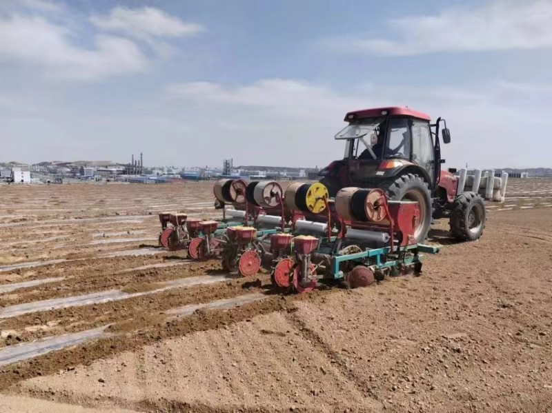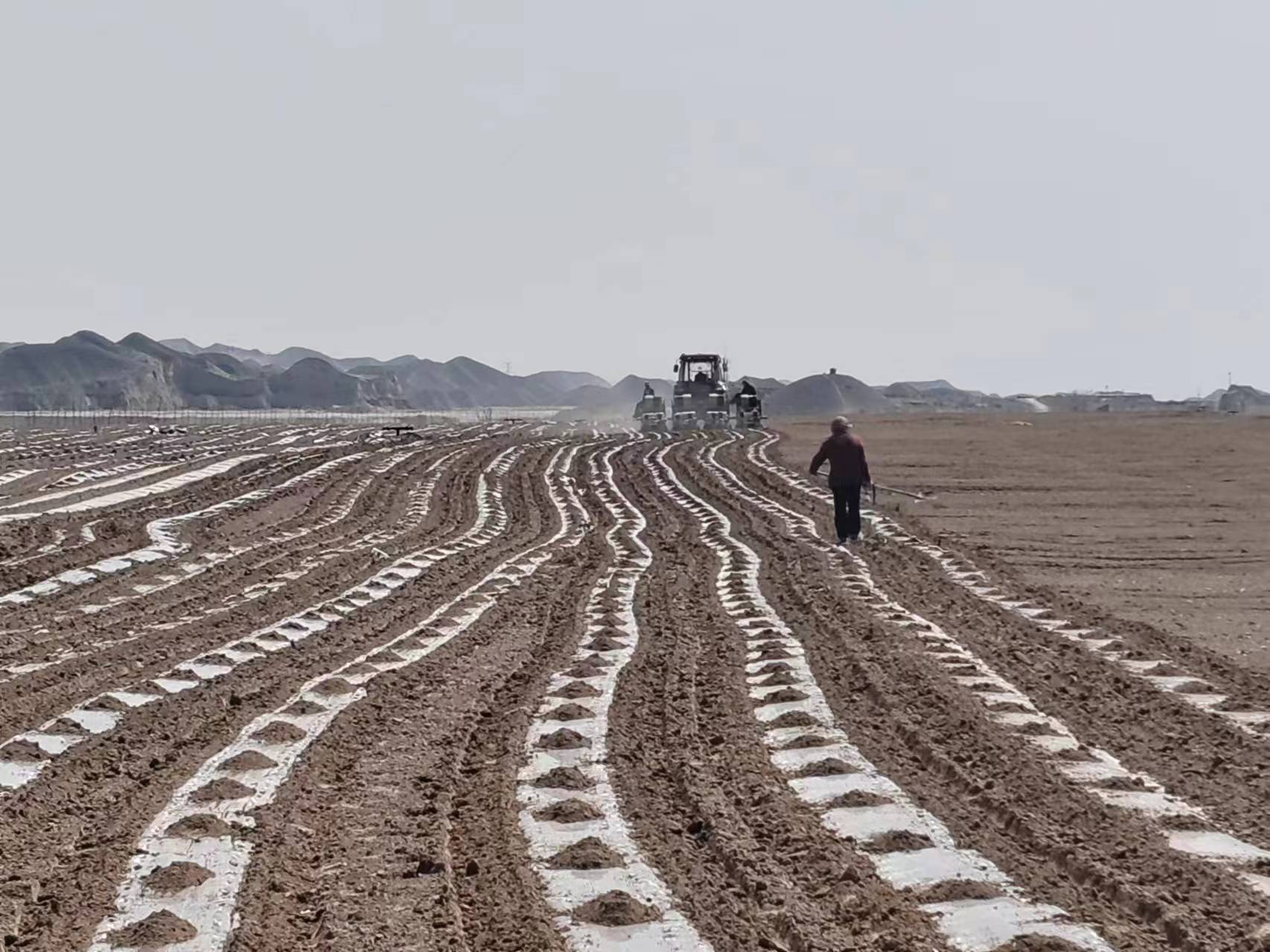 走進(jìn)蘭州新區(qū)經(jīng)三十四路以西、景中高速以東高標(biāo)準(zhǔn)農(nóng)田項(xiàng)目建設(shè)現(xiàn)場,一臺臺玉米播種機(jī)正在徐徐前行,播種、鋪設(shè)地膜、滴灌帶等環(huán)節(jié)在現(xiàn)代農(nóng)機(jī)自帶北斗衛(wèi)星導(dǎo)航系統(tǒng)的精準(zhǔn)定位下完成,作業(yè)人員緊跟播種機(jī)查看開溝、下種、鋪膜、覆土等情況。